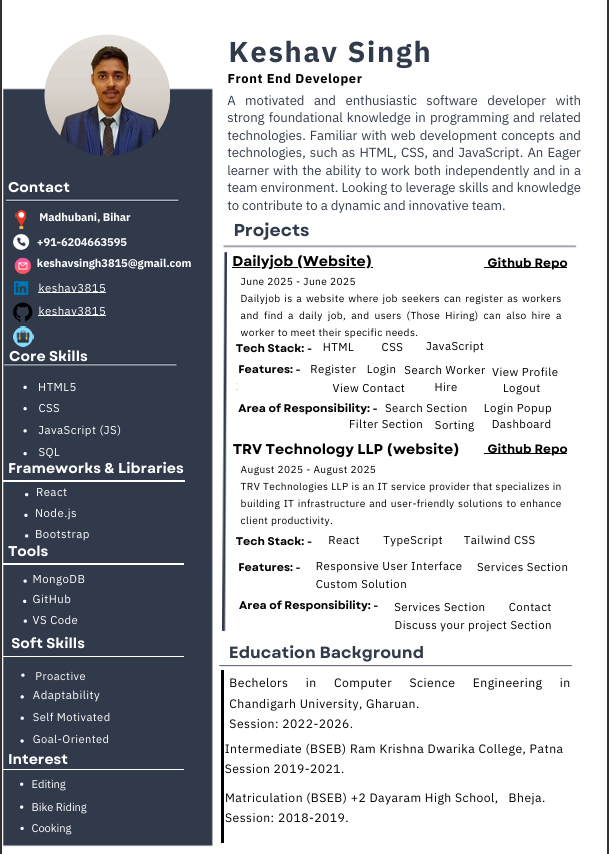 I'm Keshav Singh, a passionate web developer dedicated to creating exceptional digital experiences.